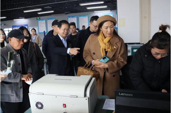 隨后,考察團一行深入生產車間。在生產測試區(qū),專家們表現(xiàn)出了濃厚的興趣,重點考察了天瑞儀器的EDX-T鍍層測厚儀和EDX3000PLUS X熒光貴金屬檢測儀。劉博士現(xiàn)場為考察團演示了設備操作,并詳細講解了這兩款儀器的技術優(yōu)勢與應用場景。成都表面工程協(xié)會考察團一行對天瑞儀器的技術實力和產品性能給予了高度認可。