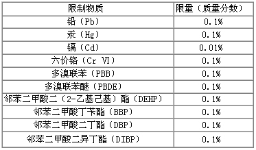 2015年6月4日,歐盟官方公報(OJ)發(fā)布RoHS2.0修訂指令(EU)2015/863,正式將DEHP、DBP、BBP、DIBP列入附錄Ⅱ限制物質(zhì)清單中,至此附錄Ⅱ共有十項強制管控物質(zhì),詳見下表: