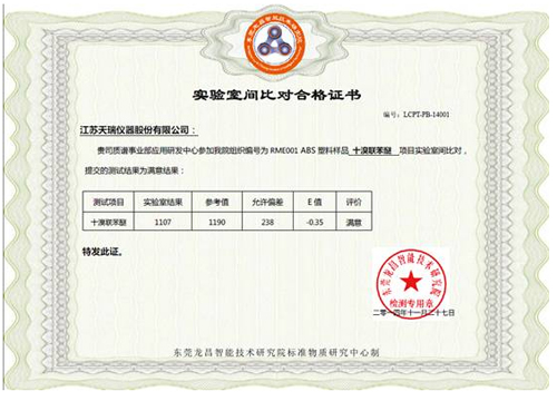 附錄2:實驗室間比對合格證書(多溴聯(lián)苯醚)