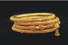 就是把黃金打制成極薄的金箔,包在以銅、銀、鋅、鎳等為基體的材料上,加工成各種飾品給人以黃金相同的感覺。飾品上往往打24KF、18KF印記。