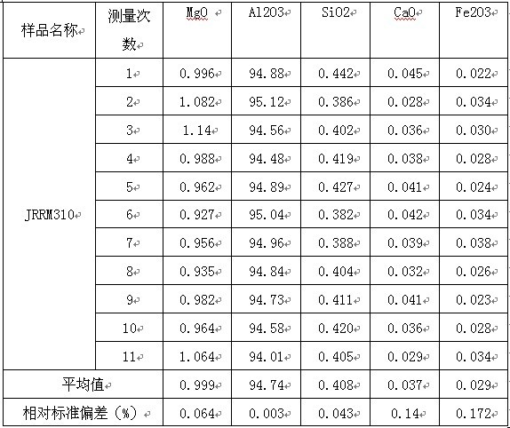 由以上測試實(shí)驗(yàn)數(shù)據(jù)可以看出,樣品重復(fù)測量11次的標(biāo)準(zhǔn)偏差符合客戶的要求,這也證明了X熒光光譜儀具有較高的測試精度,可以滿足耐火材料行業(yè)樣品測量穩(wěn)定性要求。