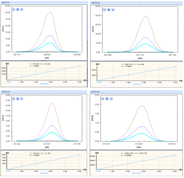在 ICP-AES正常運(yùn)行后,將樣品溶液通過進(jìn)樣系統(tǒng)引入到電感耦合等離子體中,分析波長(zhǎng)測(cè)定各元素的光譜強(qiáng)度。