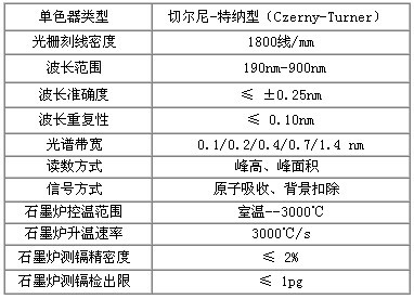 表3.AAS6000原子吸收光譜儀主要技術(shù)參數(shù)