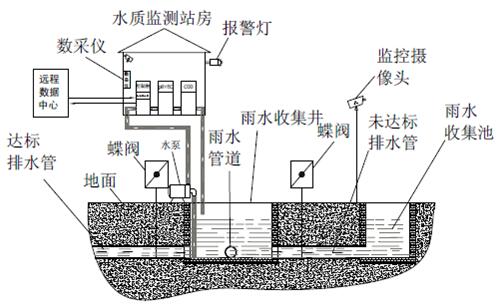 雨水排放綜合監(jiān)控系統(tǒng)可應用于企業(yè)雨水集中排放口的水質在線監(jiān)測和管理。監(jiān)控系統(tǒng)由取樣預處理系統(tǒng)、監(jiān)測設備、排放控制系統(tǒng)及數(shù)據(jù)傳輸?shù)榷鄠€系統(tǒng)組成。