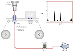 儀器以恒定的工況流量將空氣吸入顆粒物切割器中,以PM2.5為例,動(dòng)力學(xué)直徑在2.5um附近及以下的顆粒污染物進(jìn)入到儀器的富集系統(tǒng)中。經(jīng)過一段時(shí)間的富集后,富集系統(tǒng)自動(dòng)切換成β射線分析系統(tǒng),利用β射線的衰減與顆粒物的質(zhì)量濃度成指數(shù)的關(guān)系,對顆粒物的質(zhì)量濃度進(jìn)行分析。然后卷膜系統(tǒng)地將富集有空氣顆粒物的濾紙移動(dòng)到X射線熒光分析系統(tǒng),分別利用X射線熒光的能量和強(qiáng)度對顆粒物中的元素成分進(jìn)行定性和定量的分析。