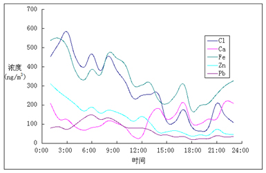 常規(guī)大氣重金屬監(jiān)測手段只監(jiān)測重金屬元素的日平均濃度的測量,但是大氣重金屬隨著氣象參數(shù)與溫度在每天的不同時(shí)間段有著較大的變化,日平均濃度無法反應(yīng)這些變化。大氣重金屬實(shí)時(shí)在線監(jiān)測可以實(shí)現(xiàn)每天重金屬濃度的小時(shí)值測定,有利于分析總結(jié)大氣重金屬和非重金屬元素的日變化規(guī)律。