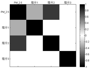 為了進(jìn)一步研究PM2.5與大氣重金屬之間的關(guān)聯(lián),并為PM2.5的控制提供方向,我們通過已經(jīng)劃分的三個(gè)組分與大氣PM2.5濃度進(jìn)行相關(guān)性分析。結(jié)果如圖5,發(fā)現(xiàn)該地區(qū)主要影響PM2.5的污染源為組分2(冶金工業(yè)廢氣)。