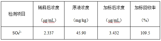 2-)含量,該方法檢出限≤0.18μg/mL,保留時間Rt定性重復(fù)性RSD為0.15%,SO